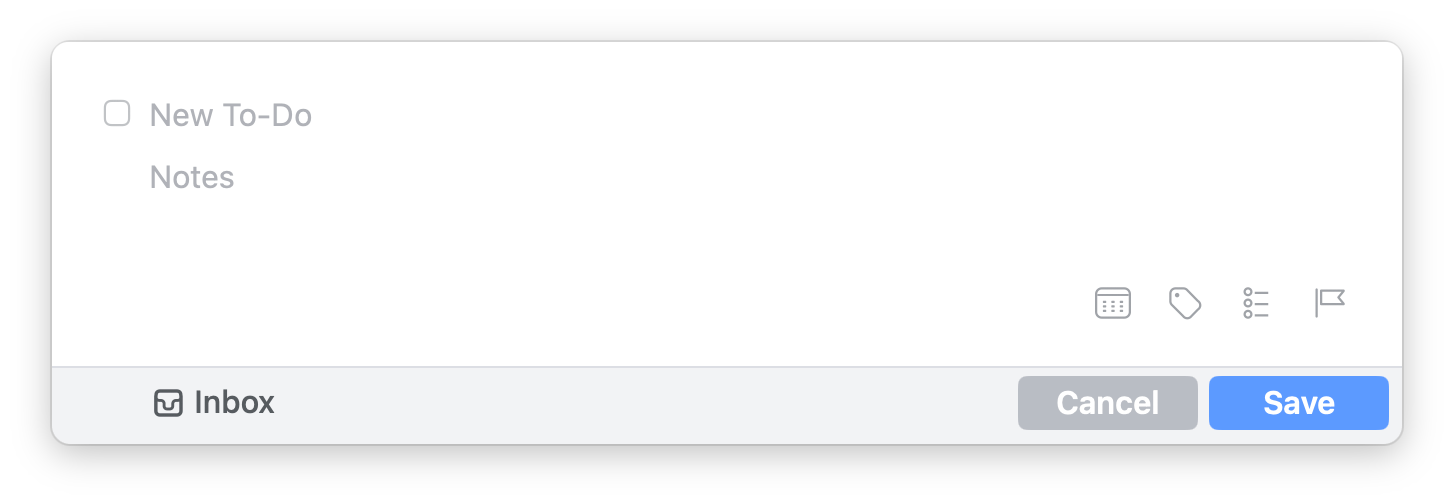 This pop-up window, known as Quick Entry, lets me capture tasks from anywhere on my laptop using a simple keyboard shortcut. I do not need to leave what I am doing or context-switch into the app. I can just dump the thought and carry on.