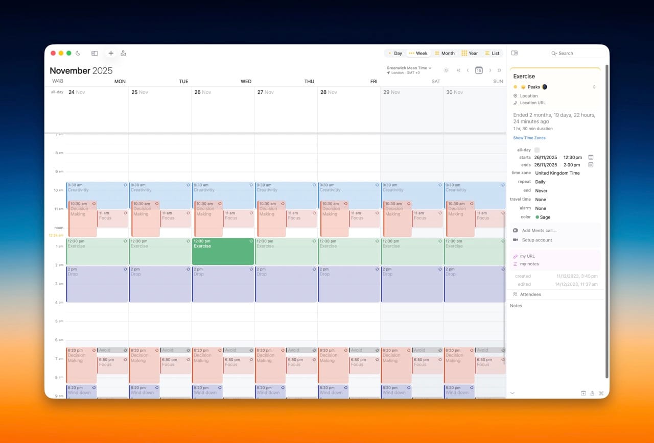 One thing a lot of people don’t realise is that you can connect the same calendar account to multiple apps at once. At one point, I had my calendar connected to five different calendar apps. Completely unnecessary, by the way, but it taught me a lot about what I actually value in a calendar interface. It also made me much more comfortable switching between calendar apps depending on my current mode, season of life, or how I need to work at that moment.