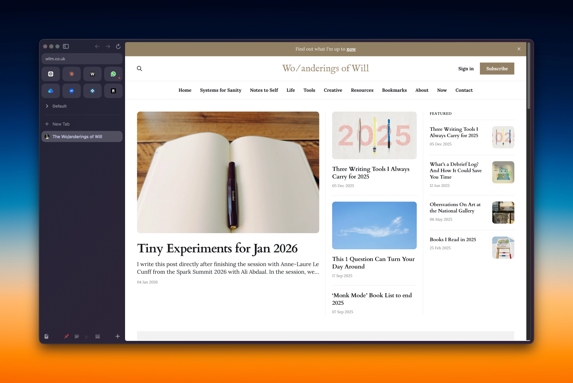 This works well when I need many tabs open for ultimate productivity. You can create workspaces, pin specific tabs within that workspace, and have apps pinned across workspaces. I used this all the time until I realised I kept everything open and never got rid of tabs. In my process of making things more minimal, I moved over to Safari.